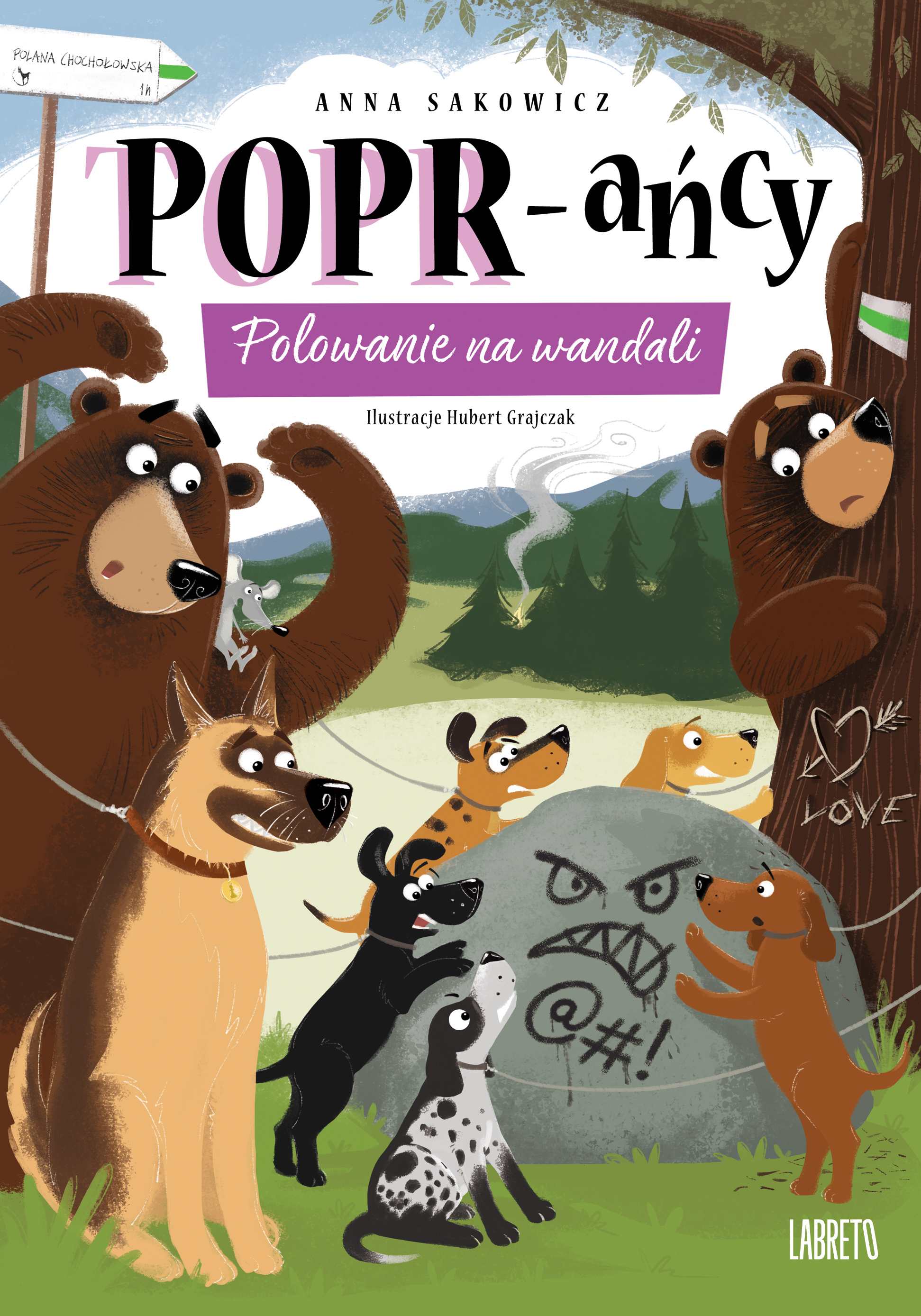 Kiedy cichnie halny, mieszkańcy Chaty pod Wierchami wybierają się na spacer. Zapowiada się wspaniała przechadzka aż do Doliny Chochołowskiej, a szczeniaki po raz pierwszy mogą pokonać tak długą trasę (legalnie, rzecz jasna). Ale cóż to? Kto i dlaczego zostawił na drzewie jakiś napis? I kto pomalował ten piękny głaz? Szczeniaki i ich opiekunowie trafiają na ślad wandali, którzy niczego sobie nie robią z otaczającego ich piękna. POPR-ańcy postanawiają więc wziąć sprawy w swoje ręce i wytropić złoczyńców. Jak szybko się okazuje, zadanie nie będzie łatwe, a spotkanie z wandalami stanie się prawdziwym zagrożeniem.